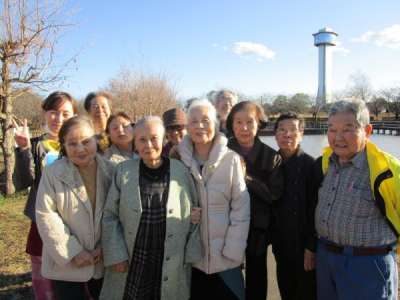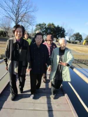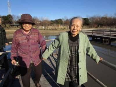 皆さんお喋りをしながら、池の周りをお散歩しながら