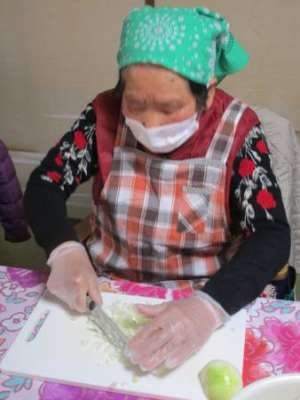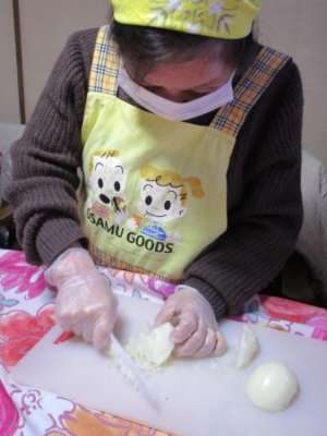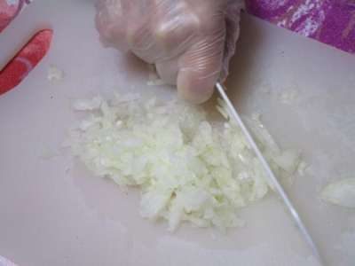 こちらでは玉ねぎのみじん切りをしています目