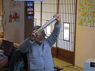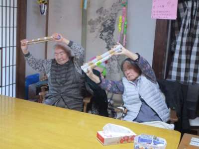 お次は棒を使って上肢の運動手 (グー)