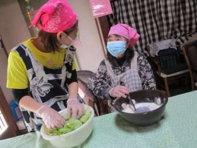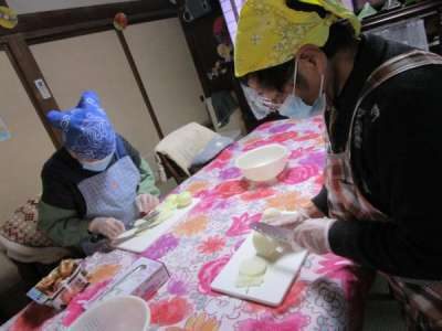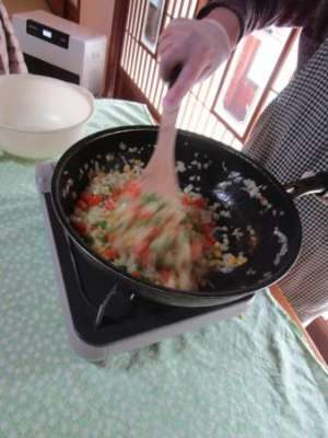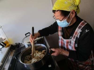 こちらの母は野菜を炒めていますが・・・