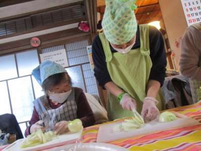 お皿に彩り良く盛り付けをしてくださる母たち
