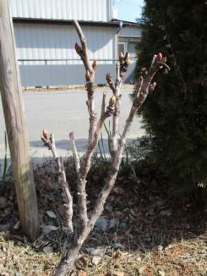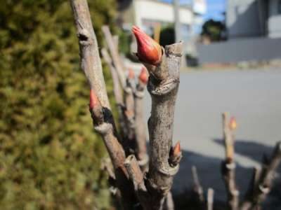 牡丹の赤い芽が出てきました