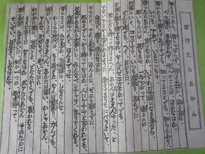 姿勢を正して・・・ぼけたらあかんの唱和本