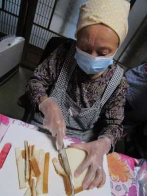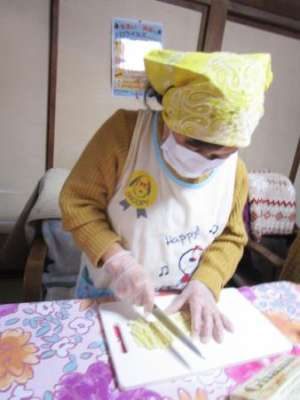 ホワイトチョコを細かく刻むチームあせあせ (飛び散る汗)あせあせ (飛び散る汗)あせあせ (飛び散る汗)