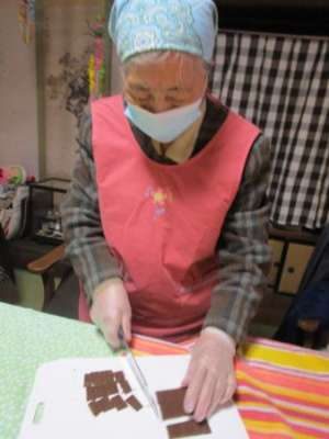 チョコのお菓子作りなどを行ないましたうれしい顔