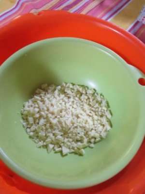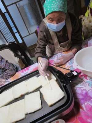 焼いたパンを細かくちぎっていきますひらめきひらめきひらめき