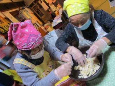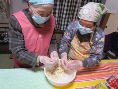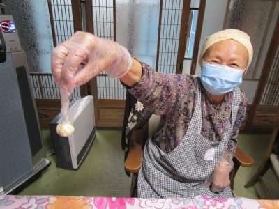 一口サイズにラップでくるくる台風台風丸めていきますひらめきひらめきひらめき