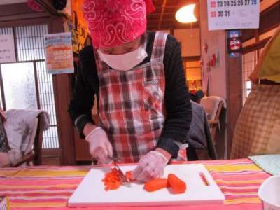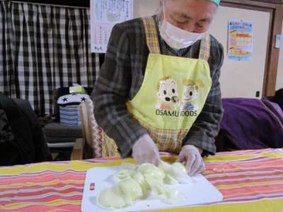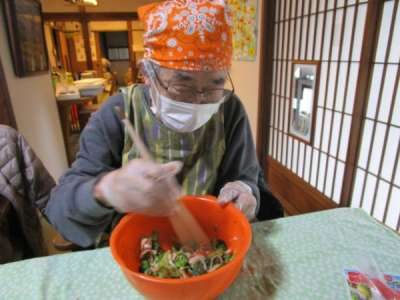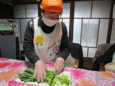 和みの幸望庵の午前中のレクは昼食づくりを行っています。