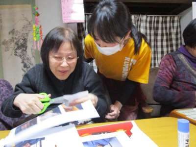写真を見ながらお隣同士で