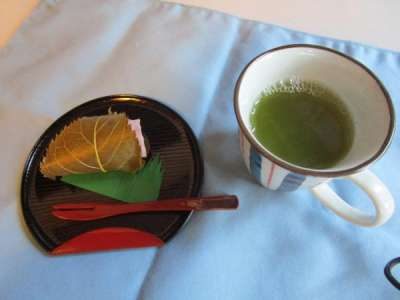 おやつには桜餅を召し上がって頂きましたムード