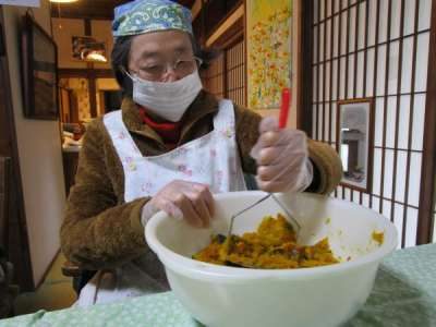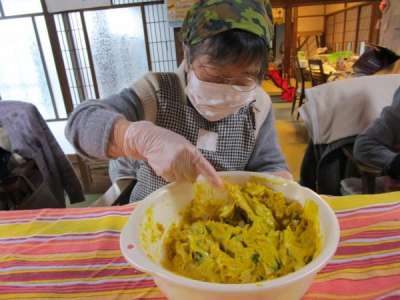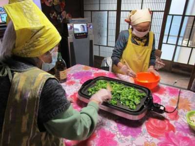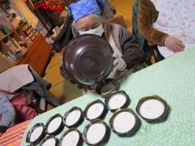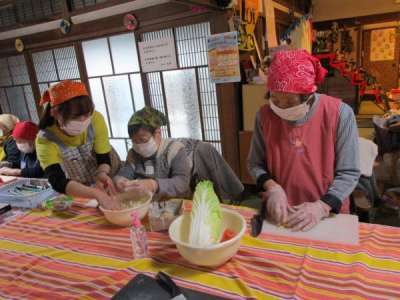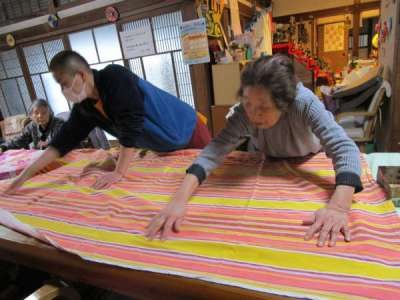 母たちの身体より何倍も大きなテーブルクロスを広げ