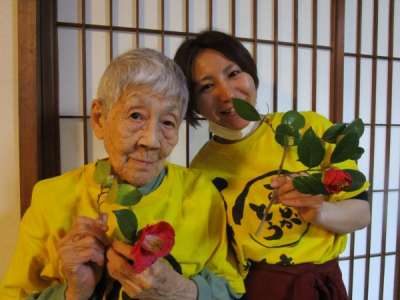 和みの幸望庵のオリジナルTシャツを着たモデルの