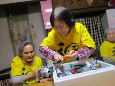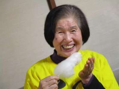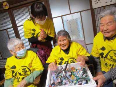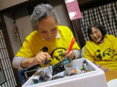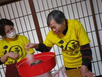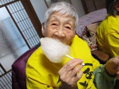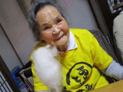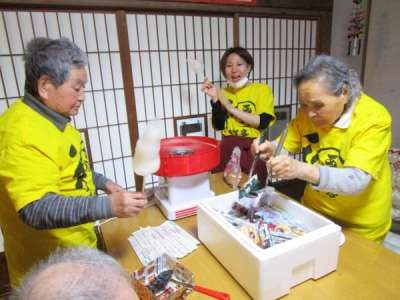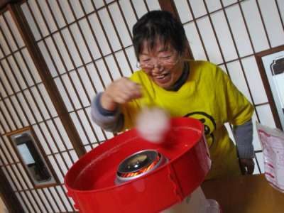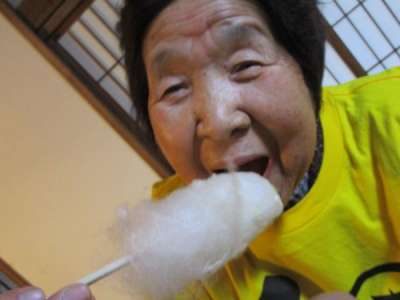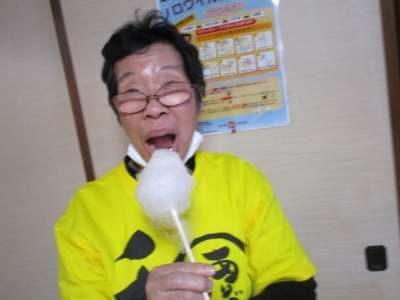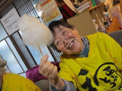 昔、わたあめをよく食べたと懐かしむ母たちの姿が