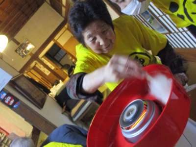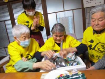 両方にお玉を持ち、できるだけ多くのお菓子を