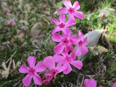 和みの幸望庵の玄関先にはピンクと白の芝桜が