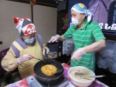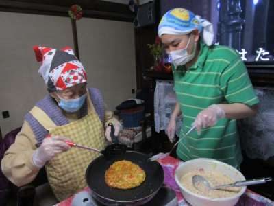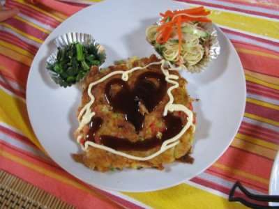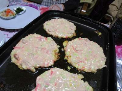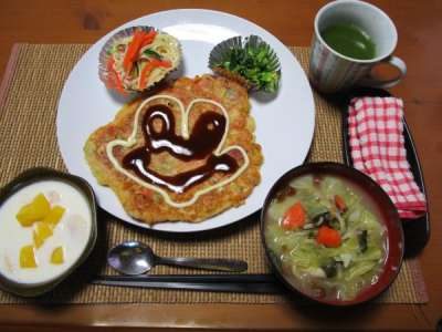 あの人気キャラクターの形のお好み焼きが焼けちゃった