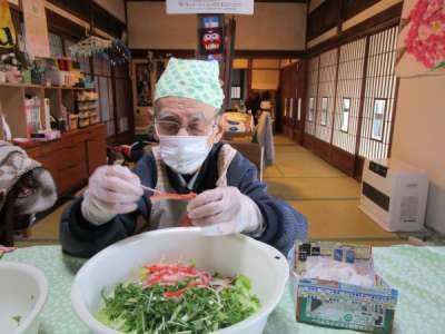 豆腐・水菜・カニカマ・レタス・ごま等々