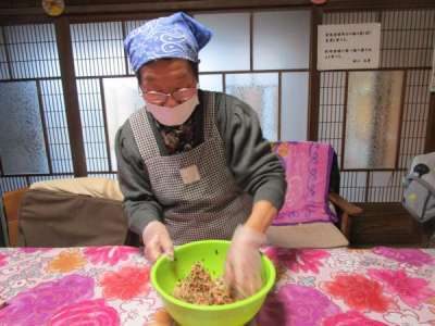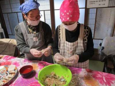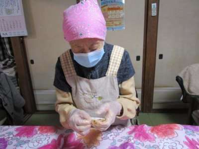 あんがとびださないように丁寧に1枚ずつ皮で包んでいきます