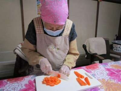 リズミカルにたくさんの野菜を母たちが力を合わせて切ってくださいました🔪