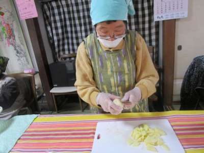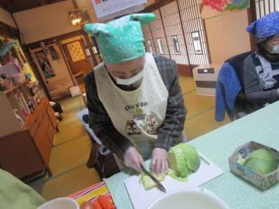 和みの幸望庵では皆さんで昼食を作り