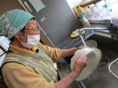 洗い物を手伝ってくださる母