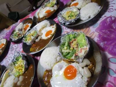 ホールの戻るとカレーのいい匂いがしています