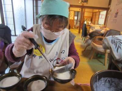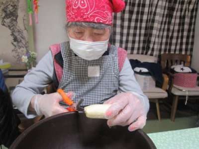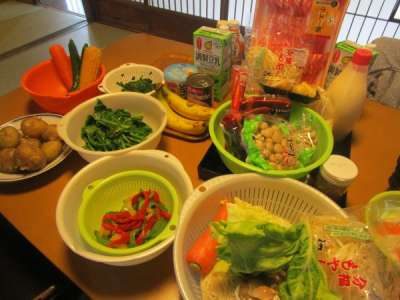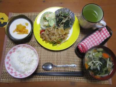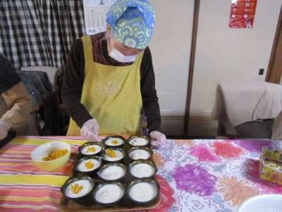 彩りに黄桃をのせて豆乳バナナヨーグルトの完成