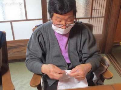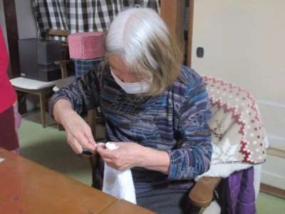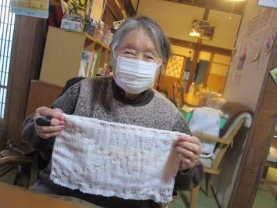 午前レクは雑巾作りです