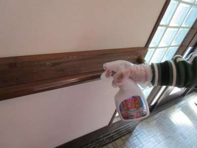 よく触れる手すりやドアノブ等の消毒も念入りに