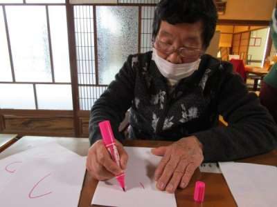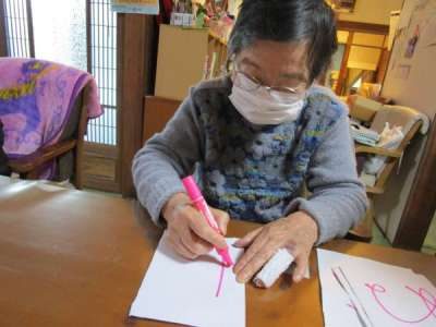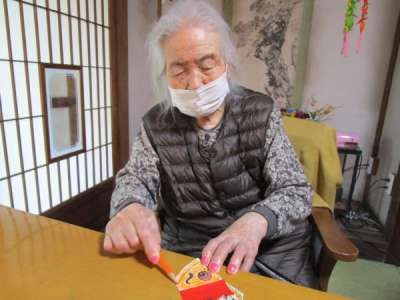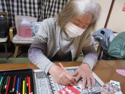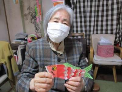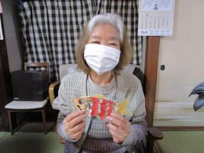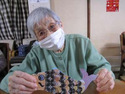 前回、作った鯉のぼりの顔に色を塗っていきます