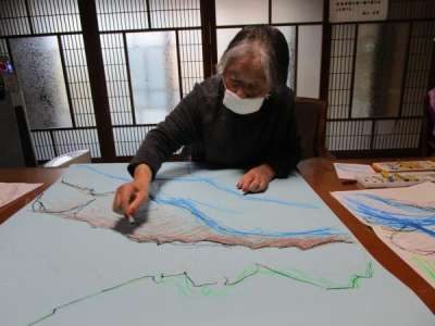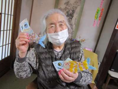 合作の鯉のぼりの壁画はすばらしい作品になりそうです
