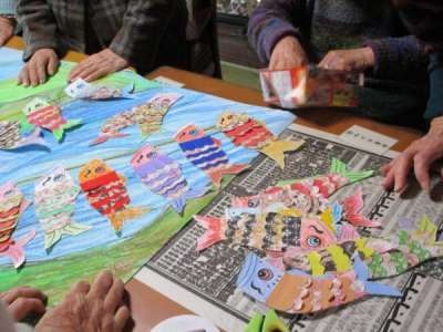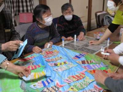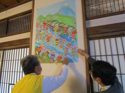 5月の壁面飾り 「川を渡る鯉のぼり」