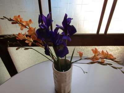 季節の花アヤメも庵内に飾って
