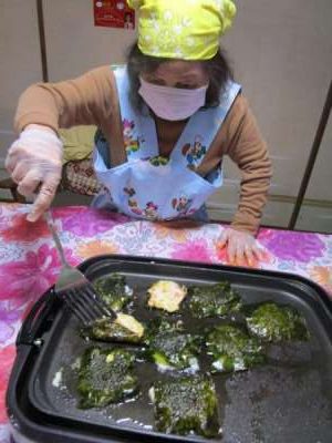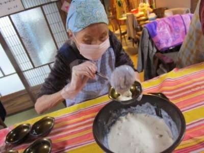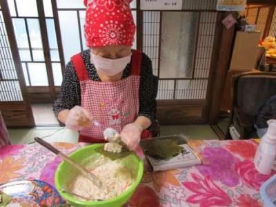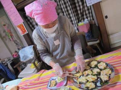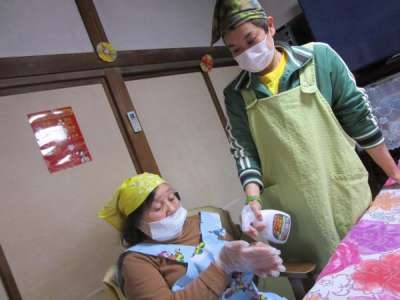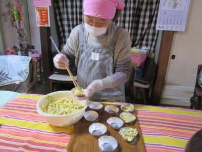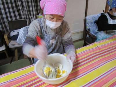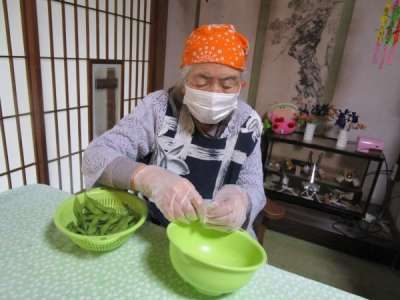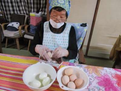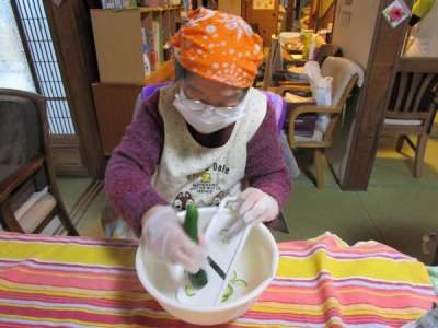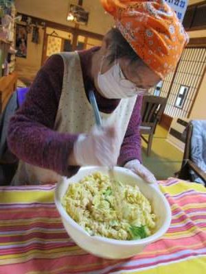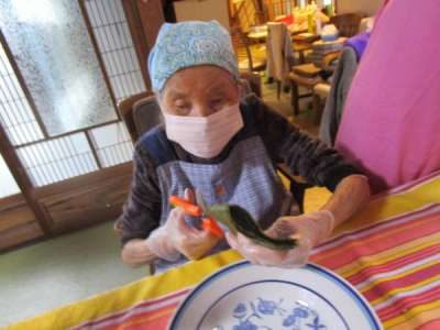 午前のレクリエーションは昼食作り