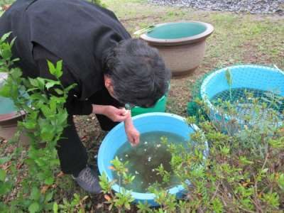 メダカにはおふをあげると近づいてきてかわいい
