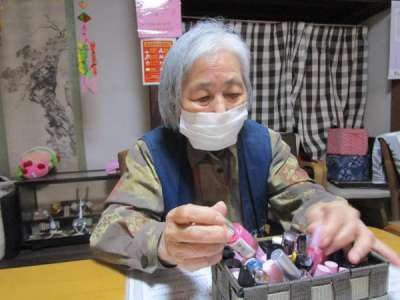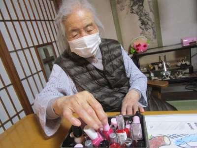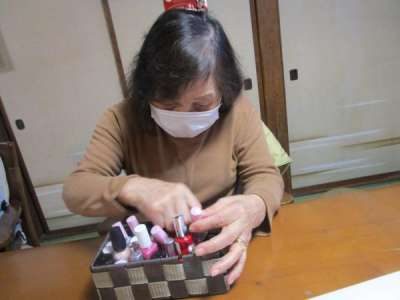 マニキュアを選ぶ母