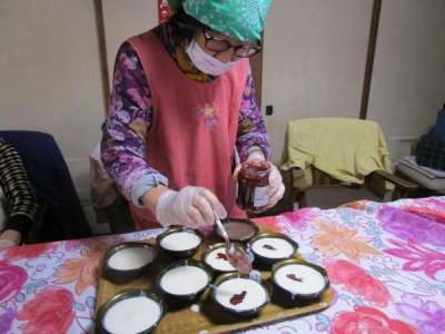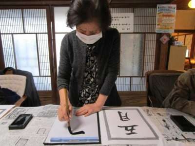 初めは久々の習字に緊張していた母たちも筆を持って実際