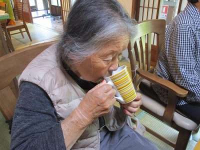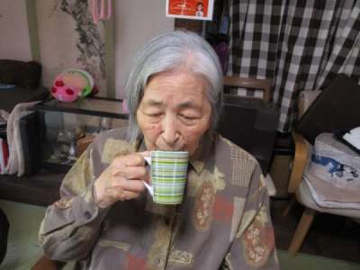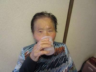 「お風呂上がりの一杯はおいしいねえ」と満足気な母