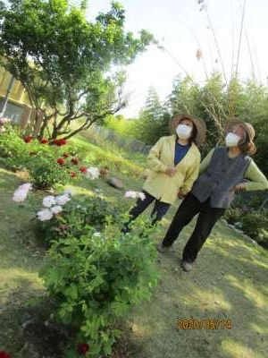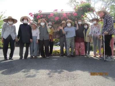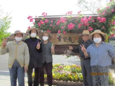 幸望庵の大好きな仲間とアンジェラのバラに囲まれて