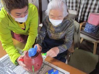貼るなどの作業を通じ、手指の巧緻性の維持し