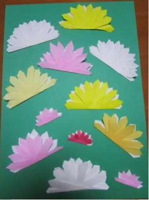 花びらの間にすき間が均等になるように重ねて貼っていきます。