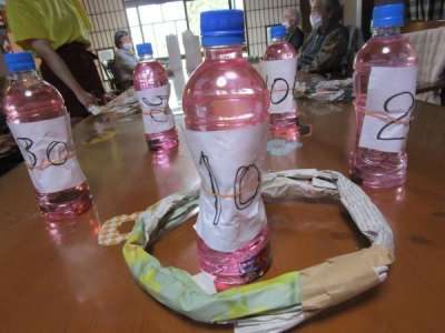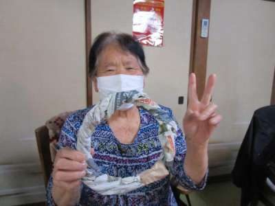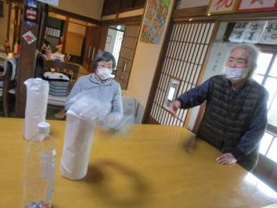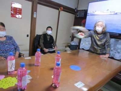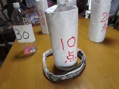 スタッフも利用者さんと一緒に輪投げにチャレンジ