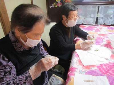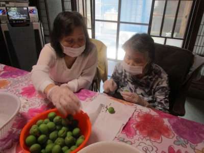 梅の選別にも ちょっぴり辛口の母たちです(>_<)