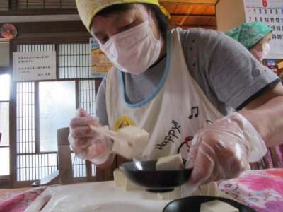お豆腐を崩さず そ―っと