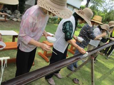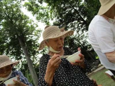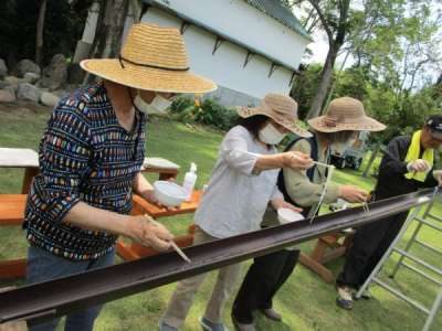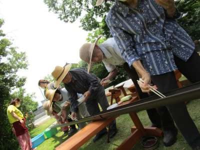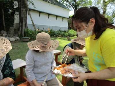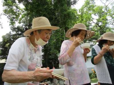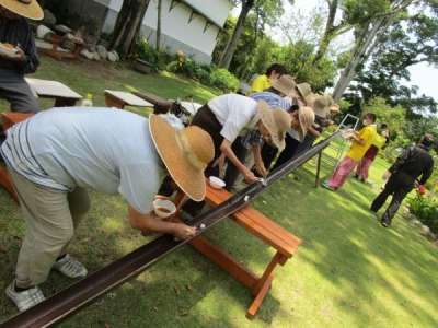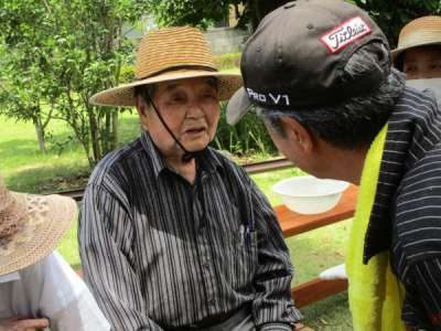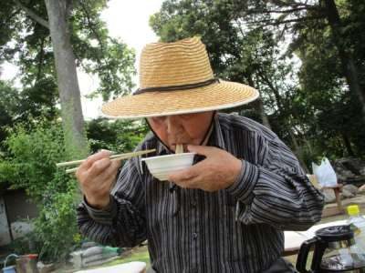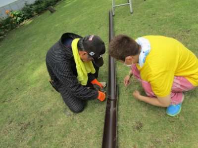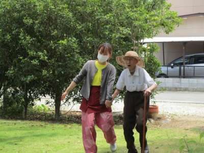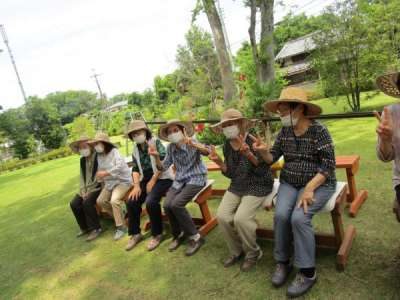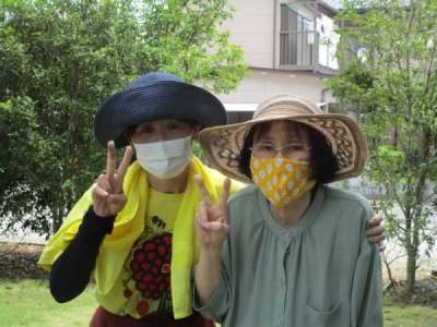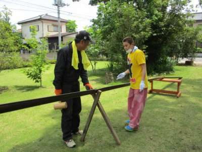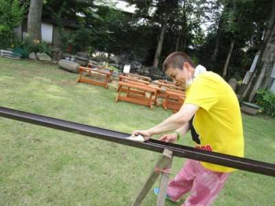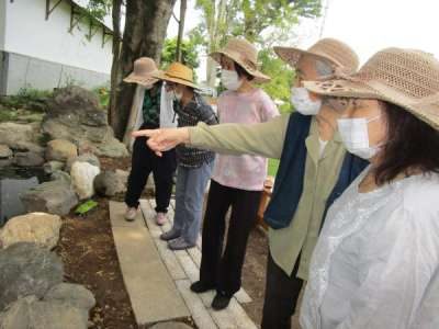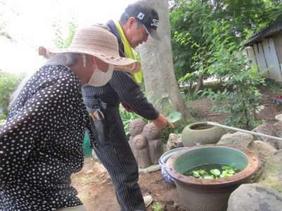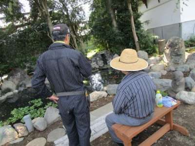 堀口オーナーと池ちゃん 仲良くお庭で作業中