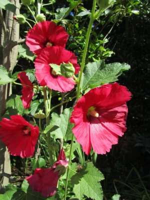 和みの散歩道では、真っ赤なタチアオイにハートたち (複数ハート)