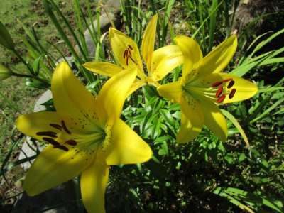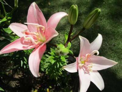 淡いピンクや鮮やかな黄色のユリの花が見頃目がハート (顔)