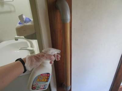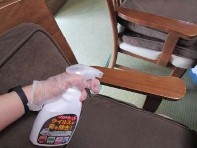 テーブルや椅子、手すりやドアノブの消毒をしっかり行い