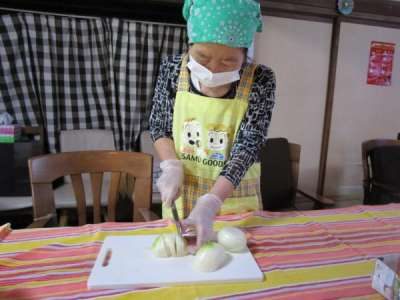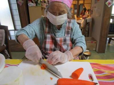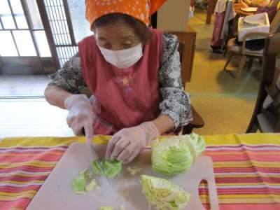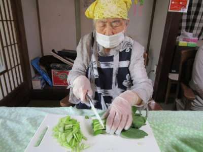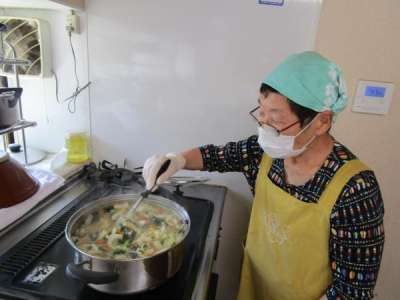 母たちの熟練した包丁裁きで均等に食材をカット🔪