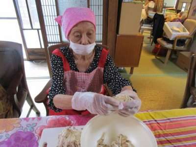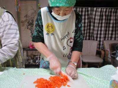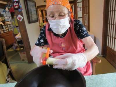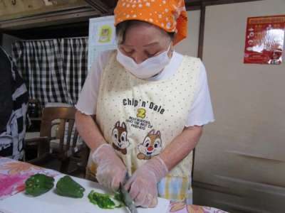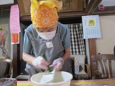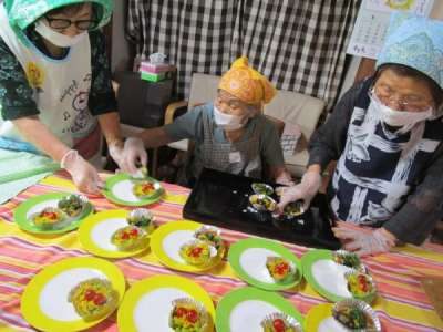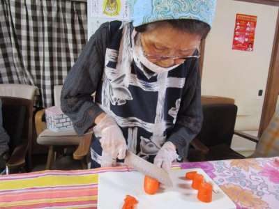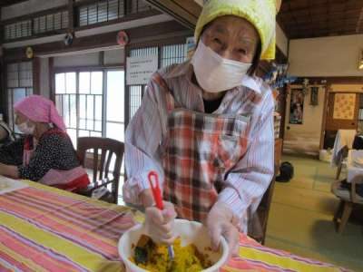 利用者さんたちのご協力によりかぼちゃのサラダや